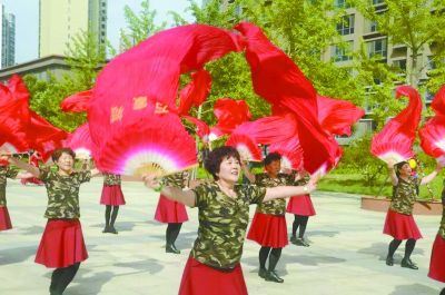 记者了解到,蓝天嘉园住有居民近万人,其中60岁以上居民2500余人,普遍对文体健身活动热情高涨,4年来成立有老年广场舞、腰鼓、模特等10余支团队。在小区6号居民楼与9号居民楼之间有一文化广场,不足500平方米,是各个团队争抢的宝地。
