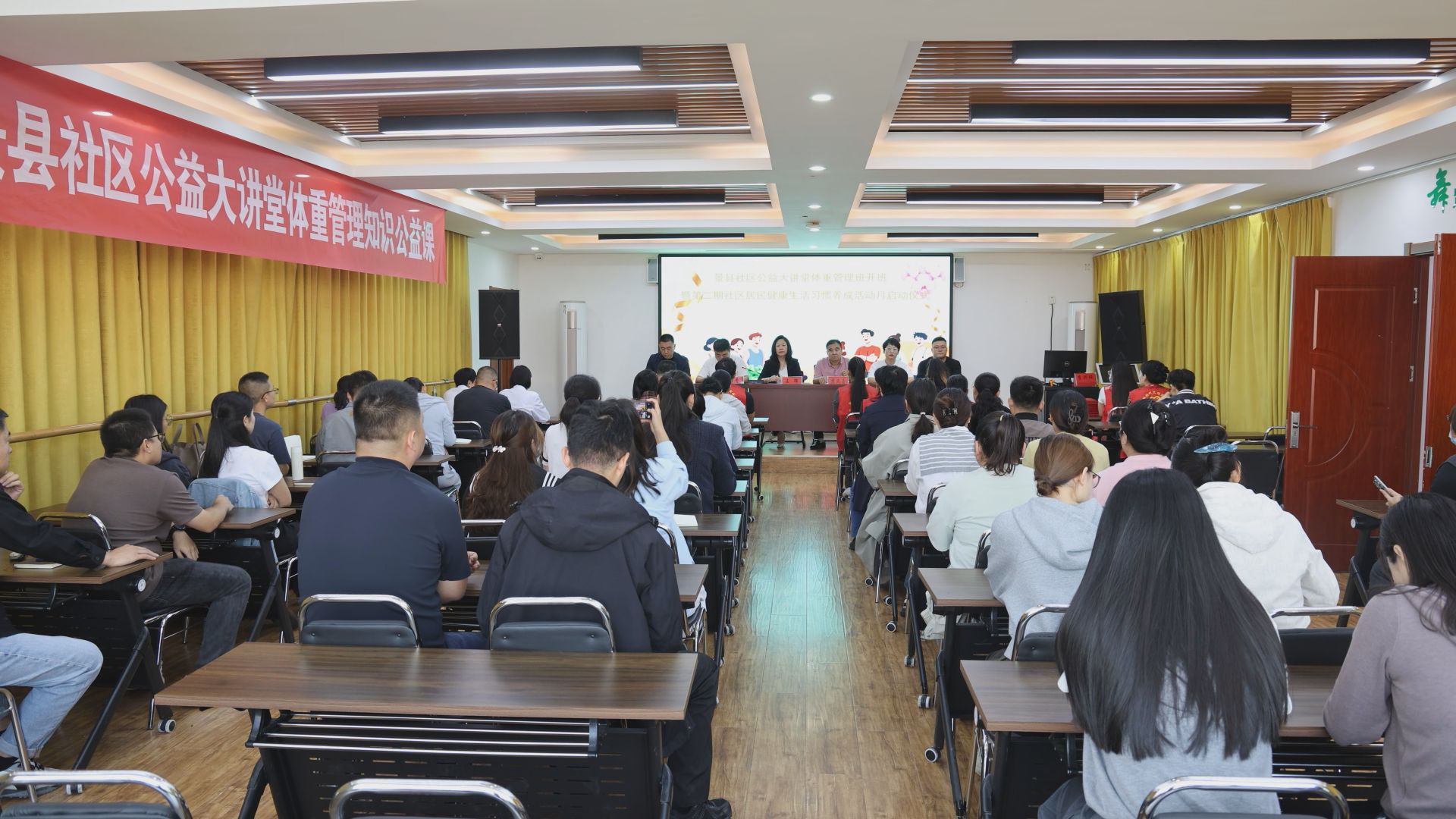 为进一步提升社区居民健康素养,普及健康知识,引导社区居民树立健康理念,增强疾病防护意识,提高自我保健能力,近日,景县社区公益大讲堂体重管理班暨第二期社区居民健康生活习惯养成活动月在西苑社区正式启动,300余名社区居民报名参加。
