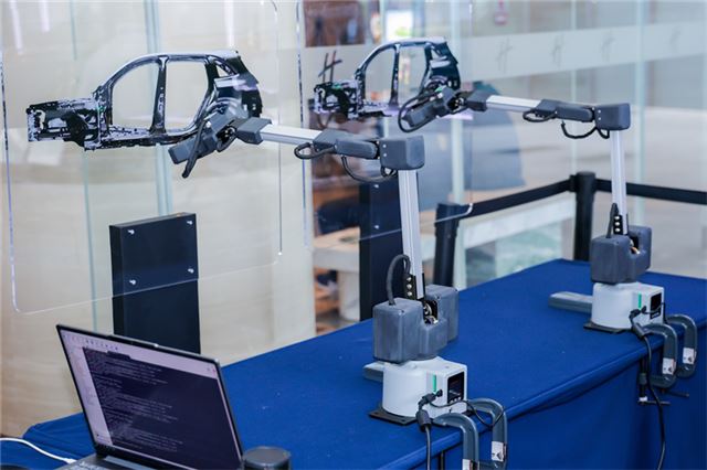 在国际星闪联盟展位,只见工作人员正在演示如何通过一个机械臂控制多个机械臂操作,工作人员表示:“这个主要应用于工业场景,现在有些工厂需要多点位焊接,有大量的重复工作,通过星闪机械臂的操作,就能大大节约时间。”