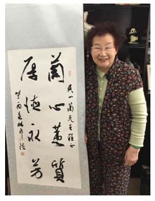 2017年春,开国元勋叶剑英长子原全国政协副主席叶选平的夫人、原深圳市副市长吴小兰与林邦德的作品《兰心惠质厚德永芳》合影