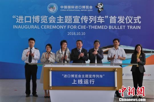 中新网上海10月10日电 (张亨伟 姜煜)首列复兴号“进口博览会主题宣传列车”10日上午正式发车。这辆满载着此次盛会“知识点”和“信息量”的高铁列车,将在京沪客运专线上运行至11月10日首届中国国际进口博览会结束。