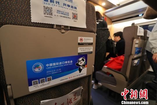 为了让公众进一步了解进口博览会,同时也为在开幕前营造出更加良好热烈的举办进口博览会的氛围,2列“复兴号”“进口博览会主题宣传列车”车厢内部的桌贴、月台贴车门贴、海报、座椅头枕片、广播和显示屏等展示区域广播、显示屏和wifi平台等展示区域,都设置了关于进口博览会的宣传内容,全方位地介绍举办中国国际进口博览会的意义、亮点等。