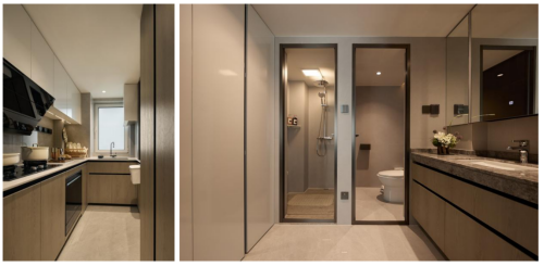 中国电建地产在设计中充分体现人性化关怀:U型厨房“洗-切-炒”黄金动线,显著提升备餐效率;三分离卫浴让洗漱、如厕、沐浴互不干扰(如图6);卧室空间在满足超强收纳功能同时还兼顾简易办公需求(如图7)。这些细致入微的产品升级,直击现代都市生活痛点,让百万佳苑兰园项目在西城区楼市中脱颖而出,备受购房者追捧。项目的成功实践表明,在城市更新背景下,通过精准产品定位与细节创新,能够有效突破空间限制,实现从“造房子”向“造生活”的价值跃升,为同类存量开发项目提供了可借鉴范本。