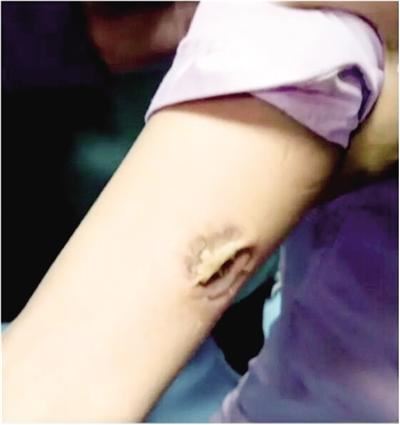 记者来到医院看到刘珊时,事情已经过去了10天,被咬的伤口已慢慢恢复,但是依然清晰可见被咬的痕迹。而患者病情好转,已经转到普通病房接受进一步治疗。
