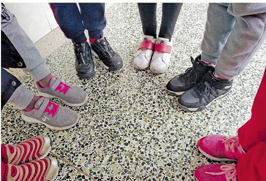 杭州市采荷第二小学六年级语文老师傅利平之前就留意到,班里学生的穿鞋风格出现了“两极分化”,一部分早早穿上了各种运动名牌成人鞋,另一部分却还穿着萌萌哒童鞋。穿童鞋的学生常会向穿成人鞋的学生投去羡慕的目光。