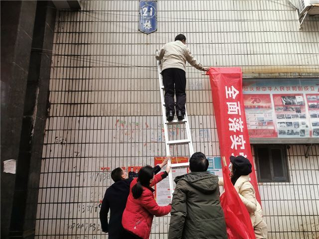 2月2日上午,面对着一地的疫情防控宣传横幅手足无措的湖南省建工集团第三工程有限公司怀化分公司疫情防控办公室工作人员,公司副总经理兼怀化分公司经理徐世红、物业公司负责人谢向东、直属党支部书记盛柏兰、经营处长吴晓英、综合办公室负责人李清香拿着梯子、锤子、绳子、钢钉等走到他们面前说:“别担心,我们大家齐心协力将横幅挂好。”