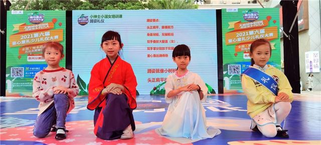 图:赛前公益培训中小朋友们示范仪态礼仪
