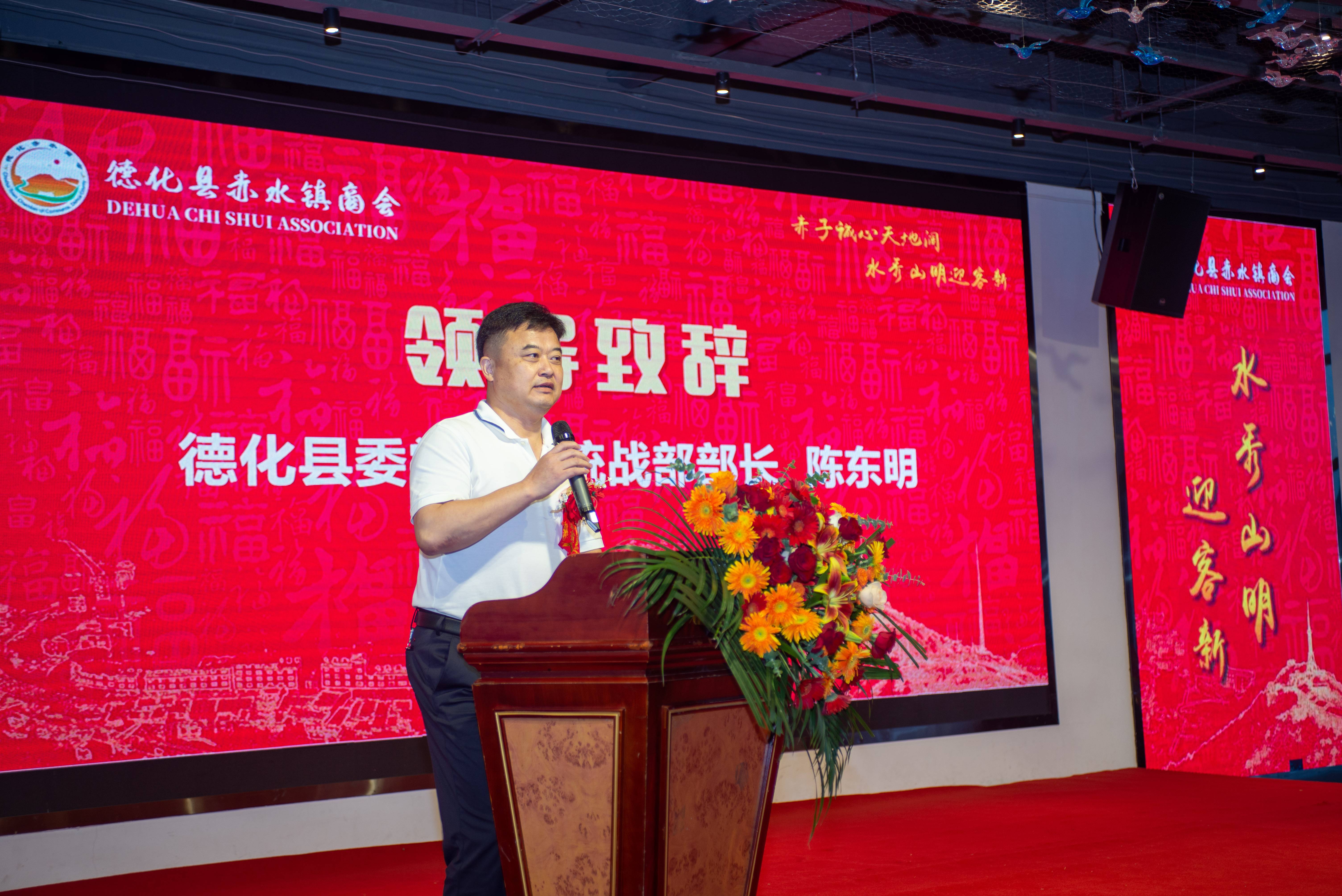 7月6日,泉州市德化县赤水镇商会召开成立大会暨举行首届理监事就职仪式。县委常委、统战部部长陈东明出席活动。