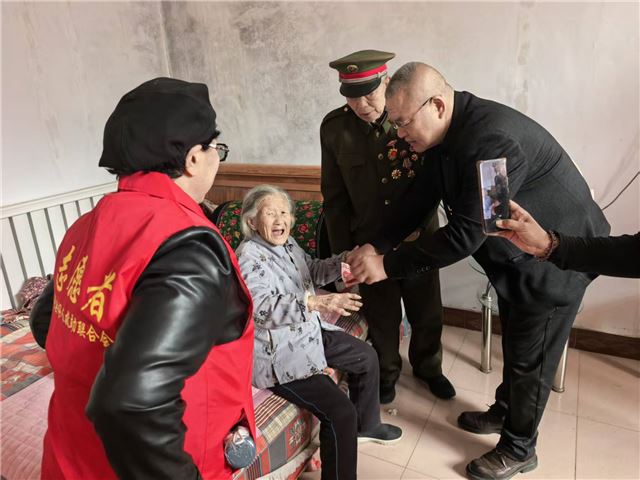 景县好人网创建人励印龙组织了这次活动,当看到这几位百岁老人,都有将自己孩子送到部队参军作战、保家卫国的经历,在慰问每位百岁老母亲时,当过兵的他都默默地举起右手,向百岁老人行一个标准的军礼,这是向百岁老人致敬,感谢他们送子参军保家卫国的爱国情怀,并祝愿老人身体健康福寿绵长。她们共同见证了共和国的沧桑巨变和辉煌成就,老人都说现在来之不易的好生活离不开共产党的领导。