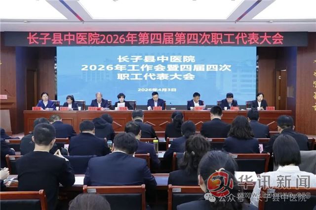 4月3日,长子县中医院召开2026年度工作会议暨党风行风廉政建设会议和第四届四次职工代表大会,县卫体局党组成员、副局长李德茂出席会议并讲话,院党政班子成员、全体职工代表、各科室主任、护士长、全体党员及部分科室列席代表参会。