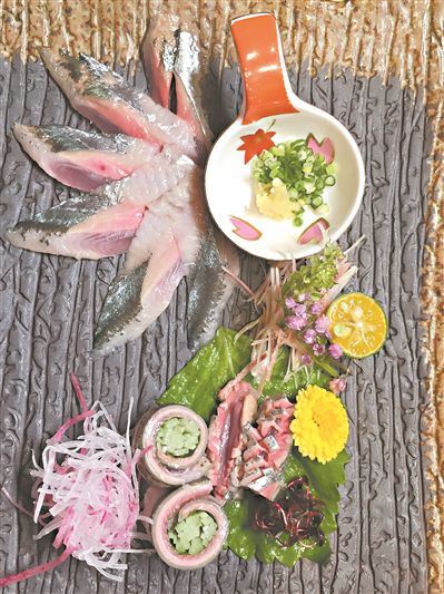 佛山罗浮宫索菲特酒店松宫日本料理厨师长程炳瑞最推荐秋刀鱼刺身,“刚宰杀的秋刀鱼是最鲜美的,时间一长腥味会加重,所以堂食都是现宰现吃。”程炳瑞介绍,秋刀鱼肉味清鲜,内脏略带清苦,喜欢秋刀鱼的吃货则会觉得这种清苦是甘味。