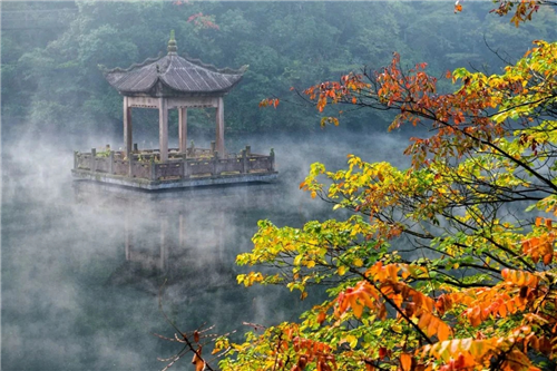 秋染深甽如画屏,茶香袅袅绕峰行。