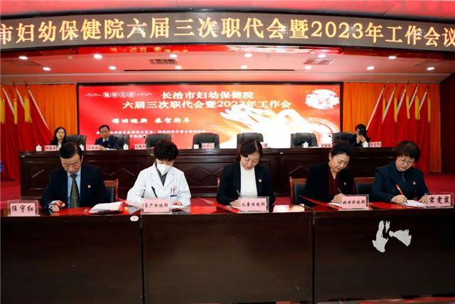守正创新 提质增效 阖家团圆 共度佳节 奋楫笃行结硕果,接续奋斗启征程。1月17日,在新春佳节即将到来之际,长治市妇幼保健院在九楼会议室召开六届三次职工代表会暨2023年工作会。院领导班子成员、中层干部、职工代表及部分受表彰人员参加会议,副院长刘桂芝主持会议。 会议在庄严的国歌声中开幕 党委书记任宇红在总结时作了题为《脚踏实地 团结力量 携手奋进妇幼保健事业新征程》的讲话,他说,2022年全院上下坚持党建引领,常态化开展党史学习教育、精准施策应对疫情防控、稳步推进乡村振兴、多措并举开展清廉医院建设、全院“精益运营、提质增效”……全年12项重点工作任务基本完成,“十四五”规划有序推进,这些成绩的取得,得益于全院上下不畏艰辛、勇毅坚守、同舟共济、众志成城的努力。2023年是全面贯彻落实党的二十大精神的开局之年,是实施我院“十四五”规划承前启后的关键一年。他强调全体干部职工要立足党建引领激发活力,为医院凝心聚力点燃新引擎;立足科技兴院和人才强院战略,为医院高质量发展提供不竭动力;立足妇幼事业笃定信心,向着新时期新目标勇毅前行。2023年的十二项重点工作任务已经明确,在新的一年,大家要心往一处想、劲往一处使,笃定信心,稳中求进,努力实现全院发展的新跨越,为全市卫生健康事业贡献力量,为全市妇女儿童生命安全与身体健康提供坚强的保障! ❀刘桂芝副院长主持会议,向大会做《长治市妇幼保健院2022年工会工作报告及2023年工作计划》 ❀王丽红副院长宣读《关于表彰2022年度先进集体和先进个人决定》 ❀任应斌副院长宣读《2022年度科技工作奖励名单》 ❀纪委书记李碧印作节前党员干部廉政教育 ❀杨建英总会计师向大会做《2022年决算工作报告及2023年预算工作报告》 党委书记任宇红和党委副书记、院长宋雯霞分别与三大部主任签订目标责任书 表彰先进 大会还对2022年度先进科室、绩效考核先进科室、疫情防控先进科室等,以及先进工作者、新技术新项目、科研教学 等12个先进科室、137名先进工作者、17类先进集体、16类先进个人,以及6类科技工作予以表彰。 先进集体代表 先进工作者代表 科技工作奖励代表 长治市妇幼保健院党委书记任宇红、党委副书记、院长宋雯霞携党政领导班子和全体医护人员提前给全市人民拜年啦,祝愿大家在新的一年里,身体健康,工作顺利,合家欢乐,万事如意! 供稿 | 院 办 李 韬 图片 | 黄河新闻网 审核 | 党 办 李向东 编辑 | 宣传科 王慧丽