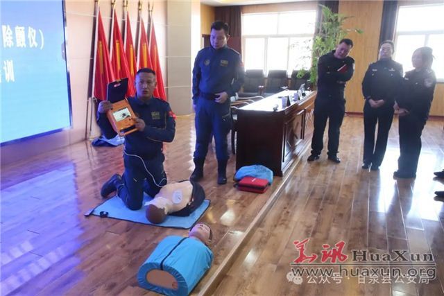 华讯头条陕西讯(通讯员:丁旭旭)为深入贯彻爱警暖警措施,进一步提高民辅警在突发事件中的自救、互救能力,1月3日,甘泉县公安局举行AED自动体外除颤仪配发仪式暨急救知识培训,县政府副县长、公安局党委书记、局长郝杰出席活动并讲话,在家局党委成员,各部门负责人及部分民辅警代表50余人参加了配发仪式。