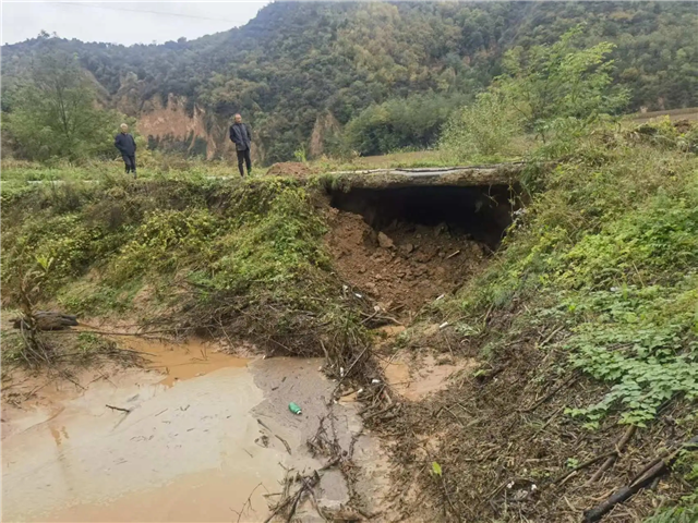 金秋十月,正是农忙丰收时节,接连的强降雨给山岔口通往朱家坪的主干道带来严峻考验。道路上的一处关键涵洞被山洪彻底冲毁,路基大面积坍塌,路面悬空,这条通往外界、承载着村民出行与物资运输的“生命线”骤然中断,严重影响了沿线村民的日常生产生活。
