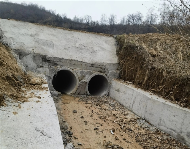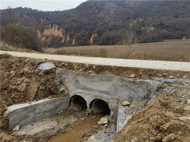确定修复方案后,施工迅速展开。与以往不同,此次修复工程充分考虑了长远的防洪需求与通行安全,采用了更科学、更坚固的设计---铺设双排直径一米的混凝土管涵。过去,涵洞口径偏小、易堵塞,一遇大雨就积水,正是导致路基被掏空的主因。新的双排大口径管涵极大提升了泄洪能力,从根本上消除了安全隐患。